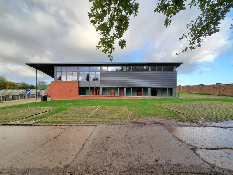 Le Centre sportif prend la forme d'un aigle déployé grâce à ses grandes poutres de bois courbées soutenant le toit. Le programme prévoit une grande salle, une salle de taille plus modeste, des vestiaires et une cafétéria avec cuisine. Il permet la pratique de diverses activités.